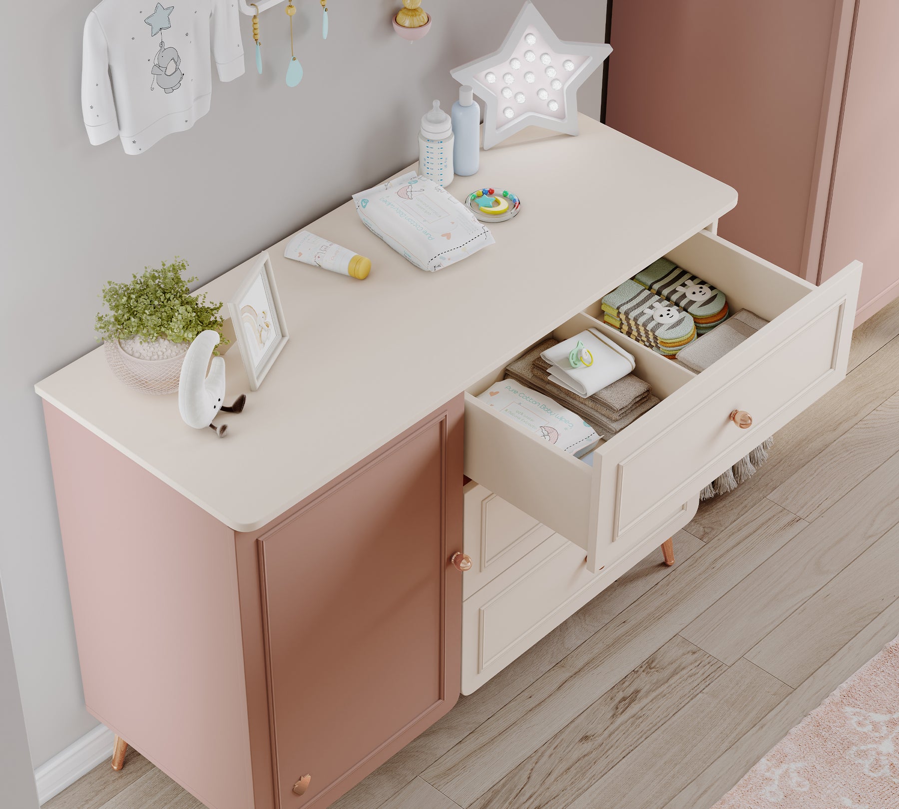 Baby Elegance kommode med låg er designet med tanke på både din og din babys komfort.