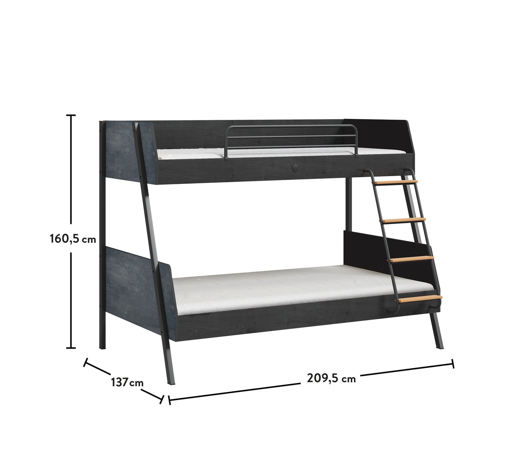Dark Metal Wide Bunk Bed giver maksimal plads i rummet med to forskellige sengestørrelser.