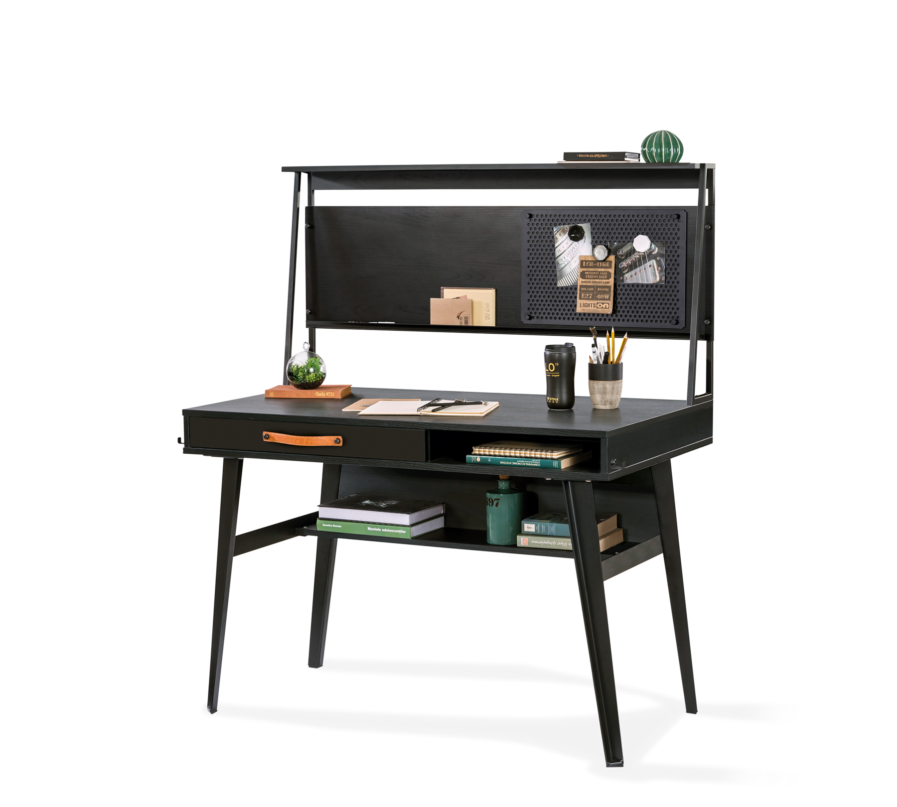 Line-enheden, der kan bruges sammen med Dark Metal-skriveborde, er en af de mest funktionelle moduler til ungdomsværelser. Whiteboards og magnetiske tavler er funktioner, der tiltrækker unges interesse og er meget efterspurgte. Det åbne design gør det muligt at arbejde komfortabelt, selv i mørke omgivelser. Hylderne på enheden giver mulighed for at skabe personlige områder. Enhedens enkle, ergonomiske design giver skrivebordet et harmonisk udseende og bidrager til en mere funktionel brug.