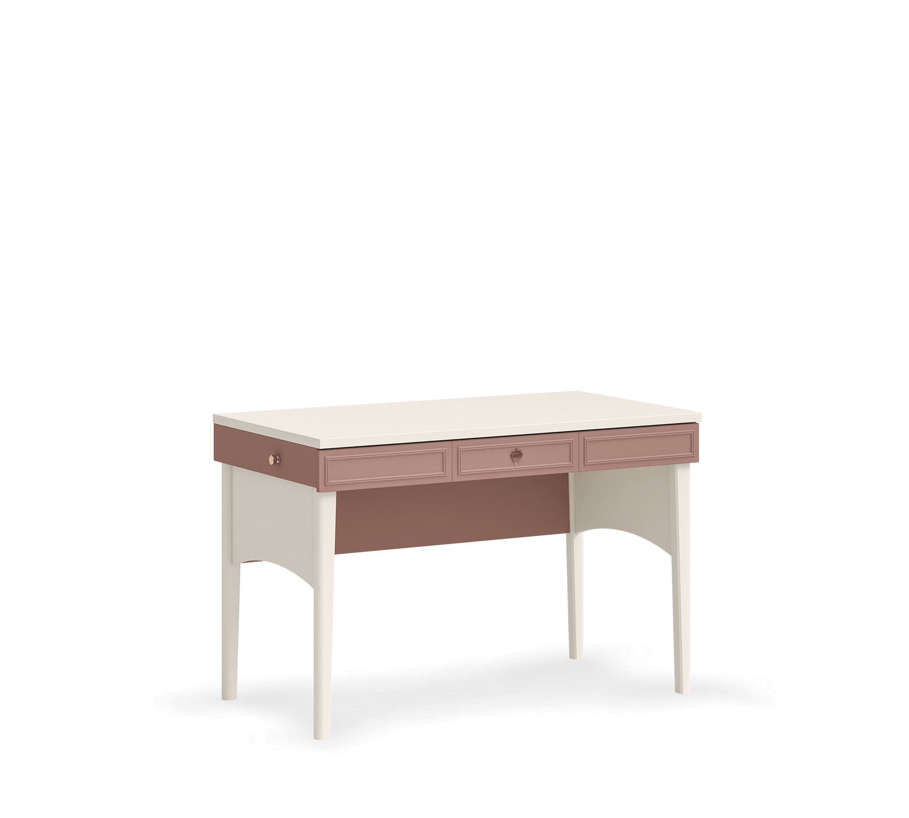 Den er designet i farvekombinationen roset (rosa) og minkcreme, og designets helhed understreges af den listede front på skuffen.
