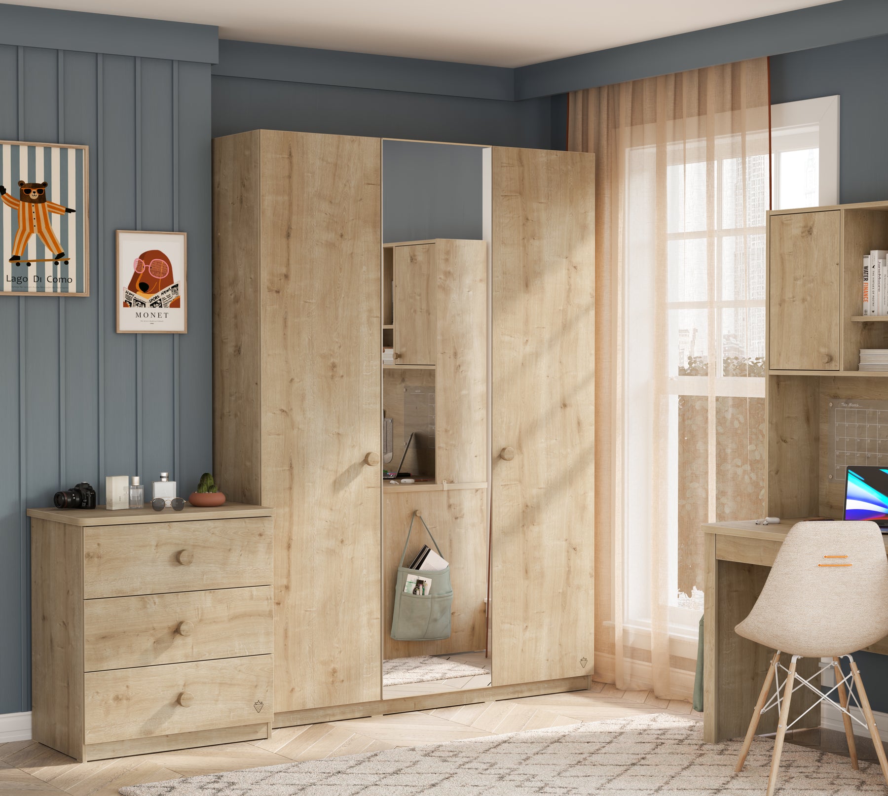 Mocha 3-dørs spejlskab