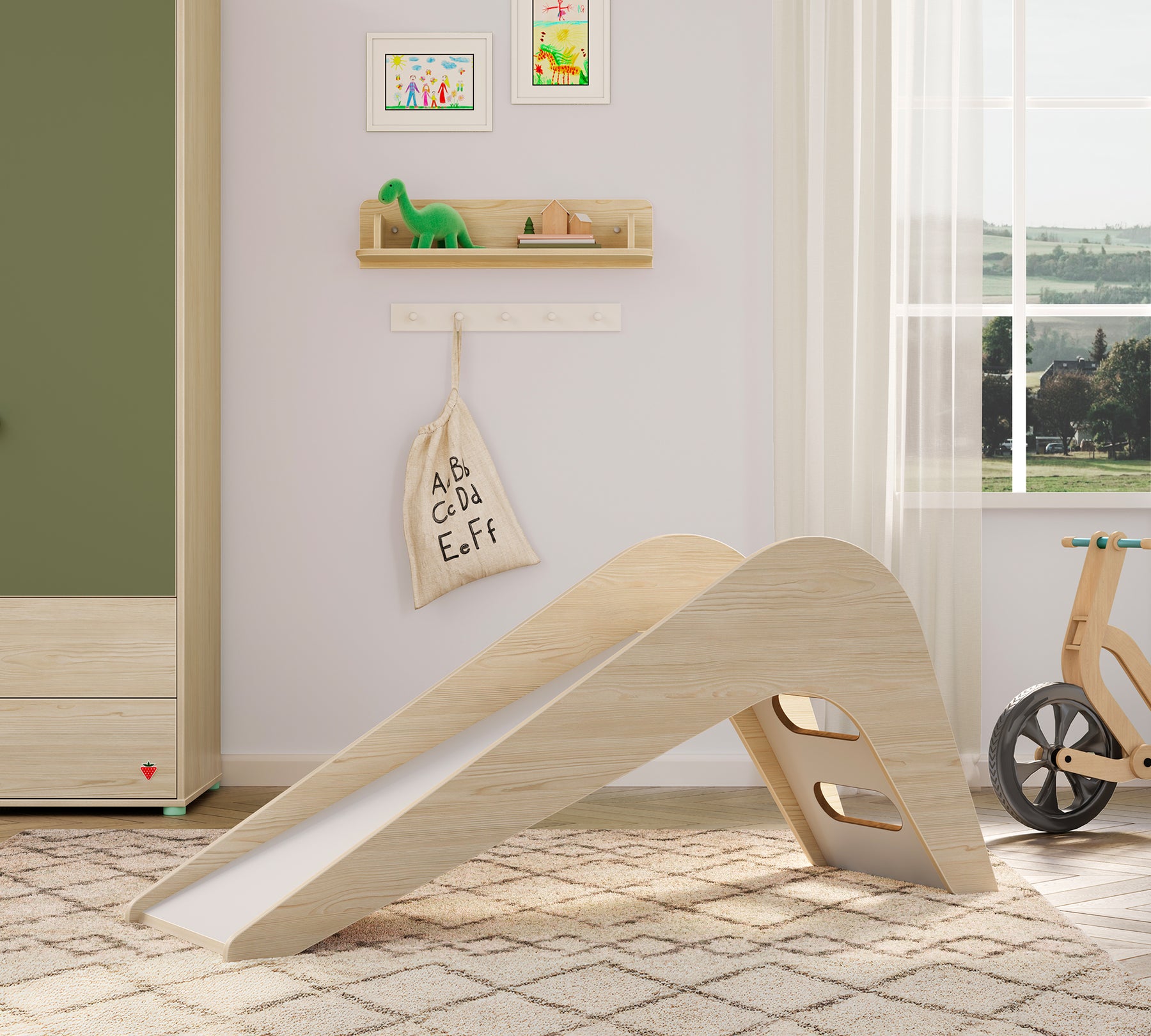 Med sine naturlige farver passer Montes Natural ind i ethvert børneværelse og bringer sjov ind i det sikreste rum i dit hjem.