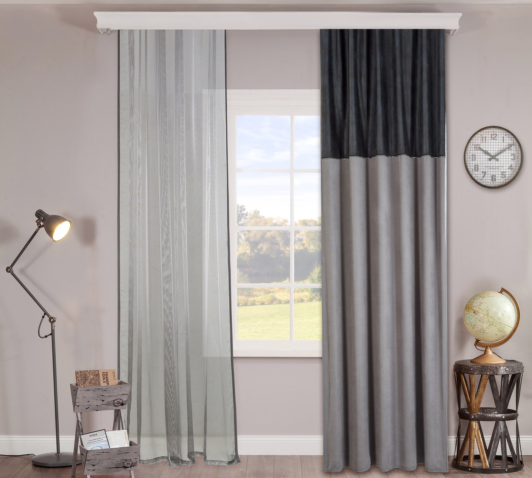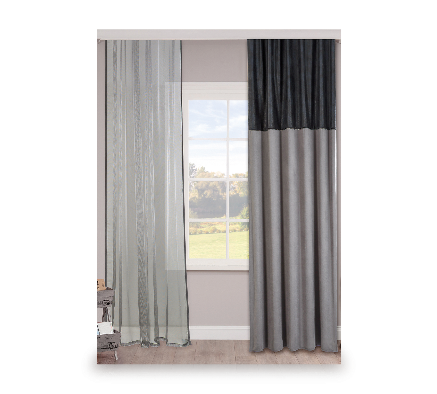 Dark-gardinen giver børne- og ungdomsværelser et moderne look med sine klassiske linjer og skiller sig ud med sine specielle stoffer og bånd. Det omhyggeligt designede og syede produkt har en bredde på 160 cm og en højde på 260 cm, hvilket gør det ideelt til vinduer. Det anthracitfarvede stof med skyprint og det grå stof er fremstillet af 100 % polyester. Produktet er også populært på grund af sin specielle struktur.