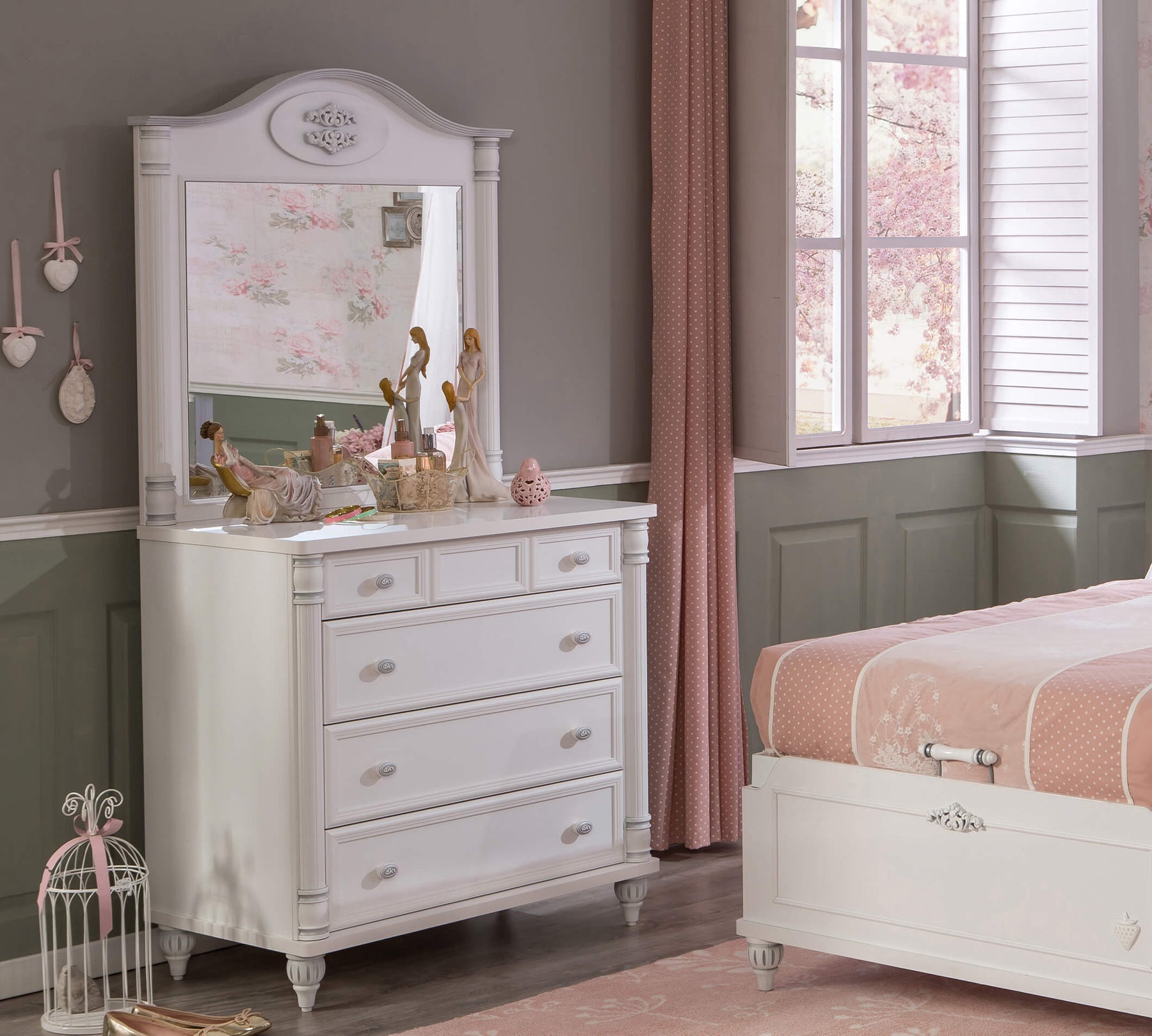 Romantic-serien er et af de mest funktionelle møbler til ungdomsværelser, og Romantic-kommoden holder alle tingene på plads med sine mange skuffer. Alternative skuffebredder giver flere anvendelsesmuligheder og skaber praktiske løsninger med separate rum til tøj og tilbehør.