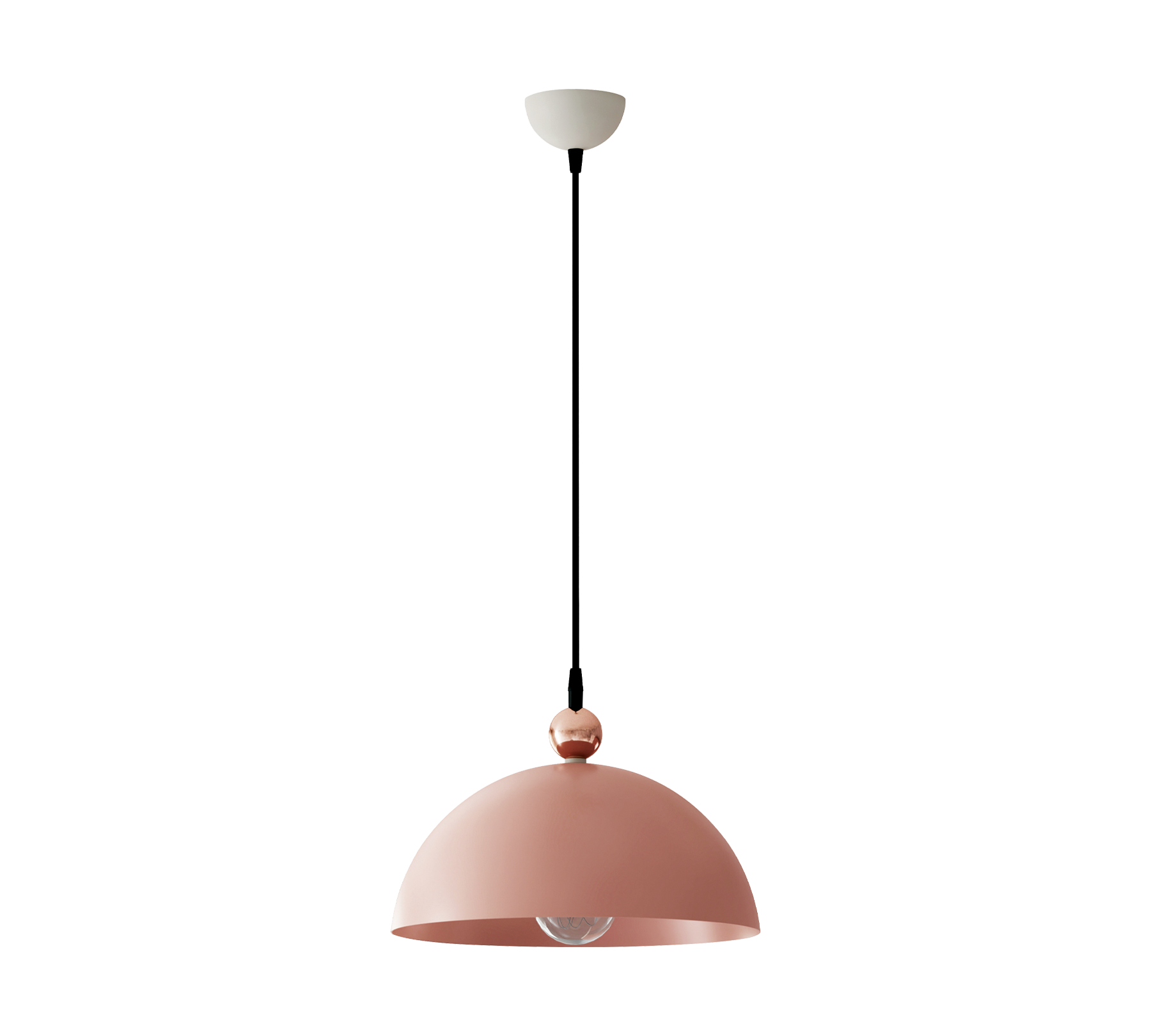 Den halvkugleformede metalhat, der er farvet med statisk pulvermaling, sikrer, at lyset fordeles optimalt i rummet. Rossy-tilbehør tilfører ungdomsværelser helhed med sine moderne linjer og beroligende farver og skaber en fredfyldt atmosfære.