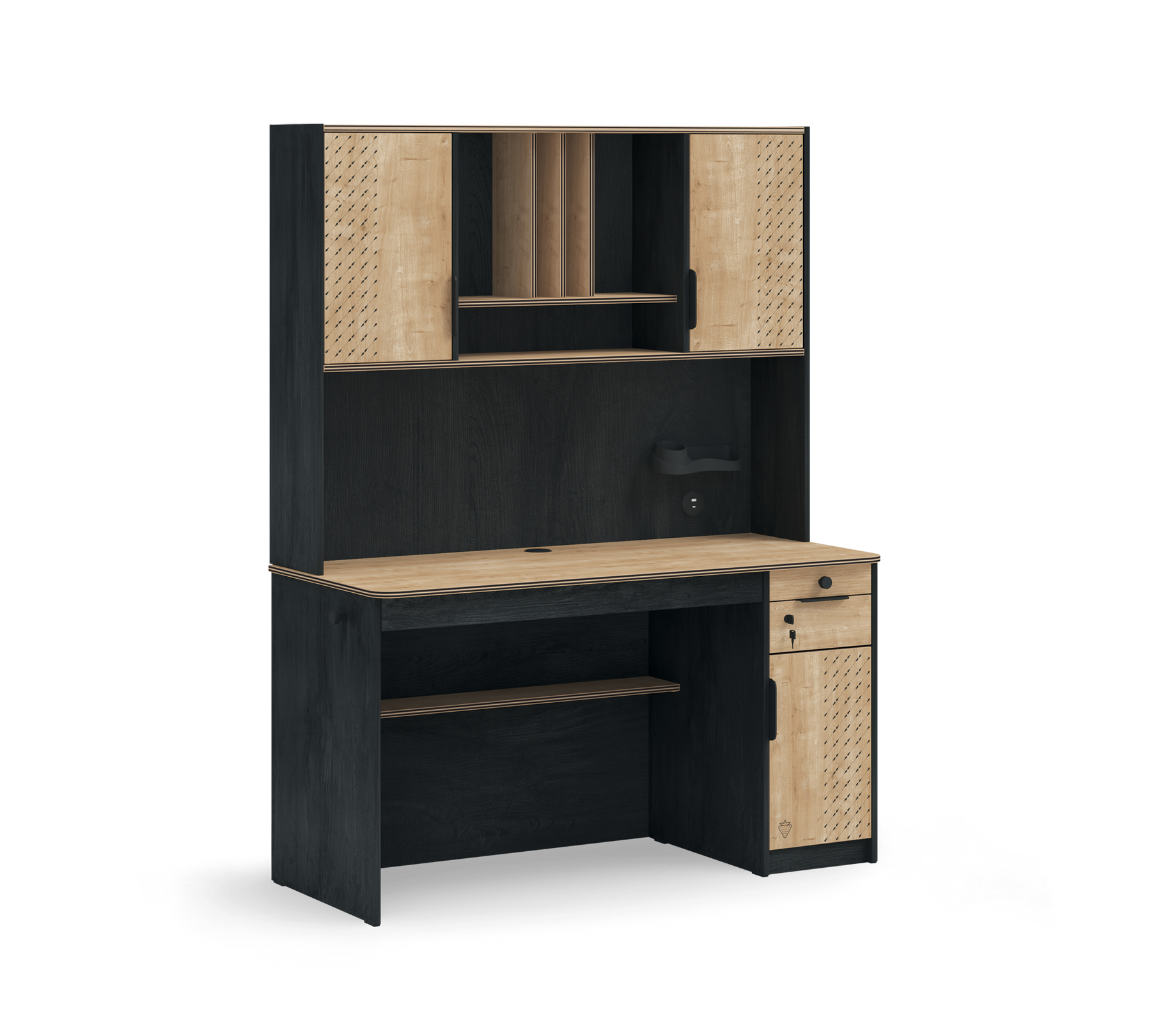 Black Arbejdsenheden er designet med tanke på alt, hvad du kan have brug for i dit arbejdsområde. Den er udstyret med penneholder, hylde og skuffer. Dette sikrer et mere effektivt arbejdsmiljø.