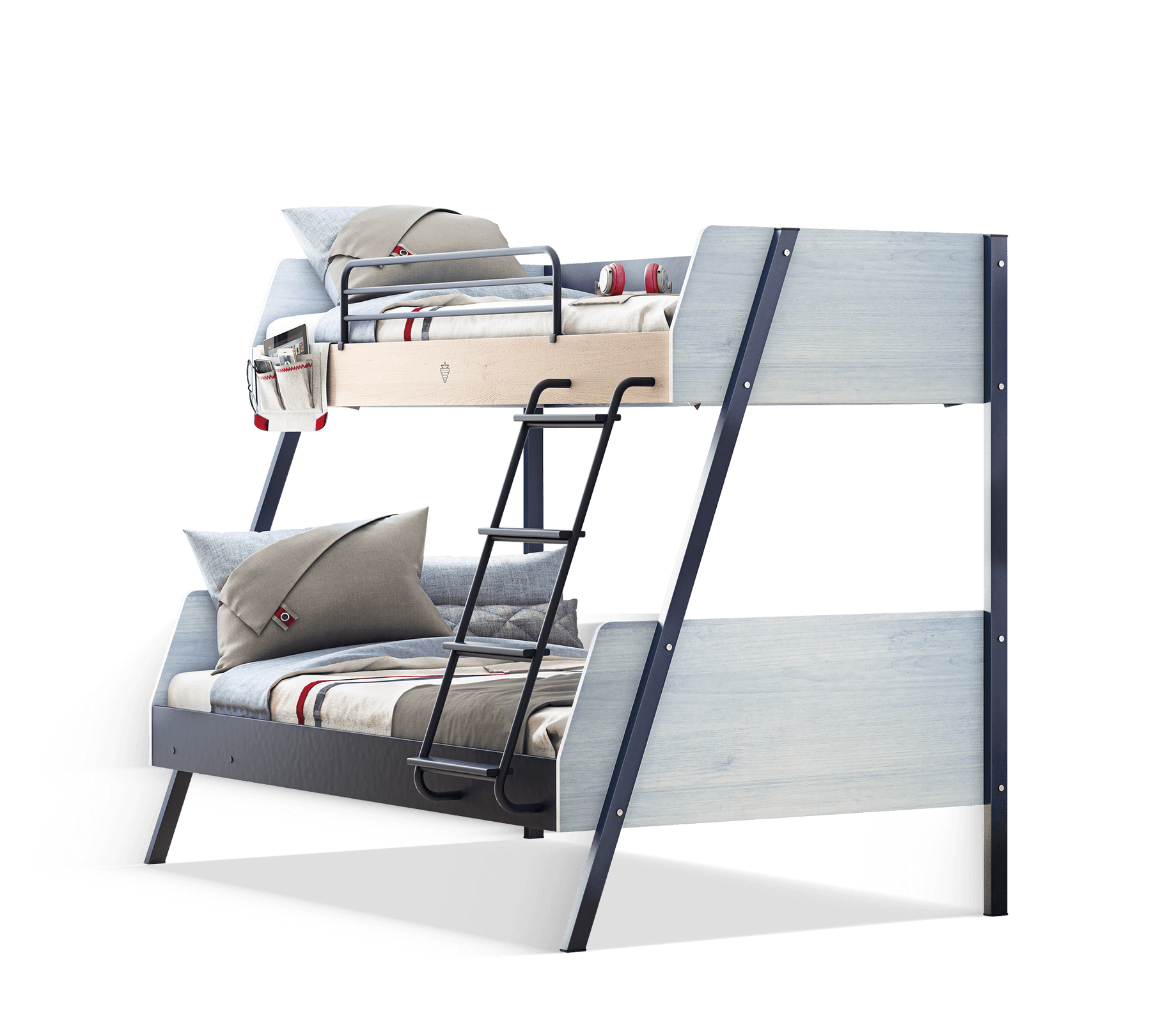 Trio bred køjeseng er med sit praktiske og stilfulde design et uundværligt element i børne- og ungdomsværelser. Trio Køjeseng adskiller sig fra andre køjesenge med sin brede underdel og er ideel til børn og unge, der elsker komfort og plads. På den forreste side af trækojesengen er der praktiske og multifunktionelle stoflommer. Køjesengen er designet og produceret i henhold til TSE-standarder og opfylder både forældres, børns og unges forventninger.