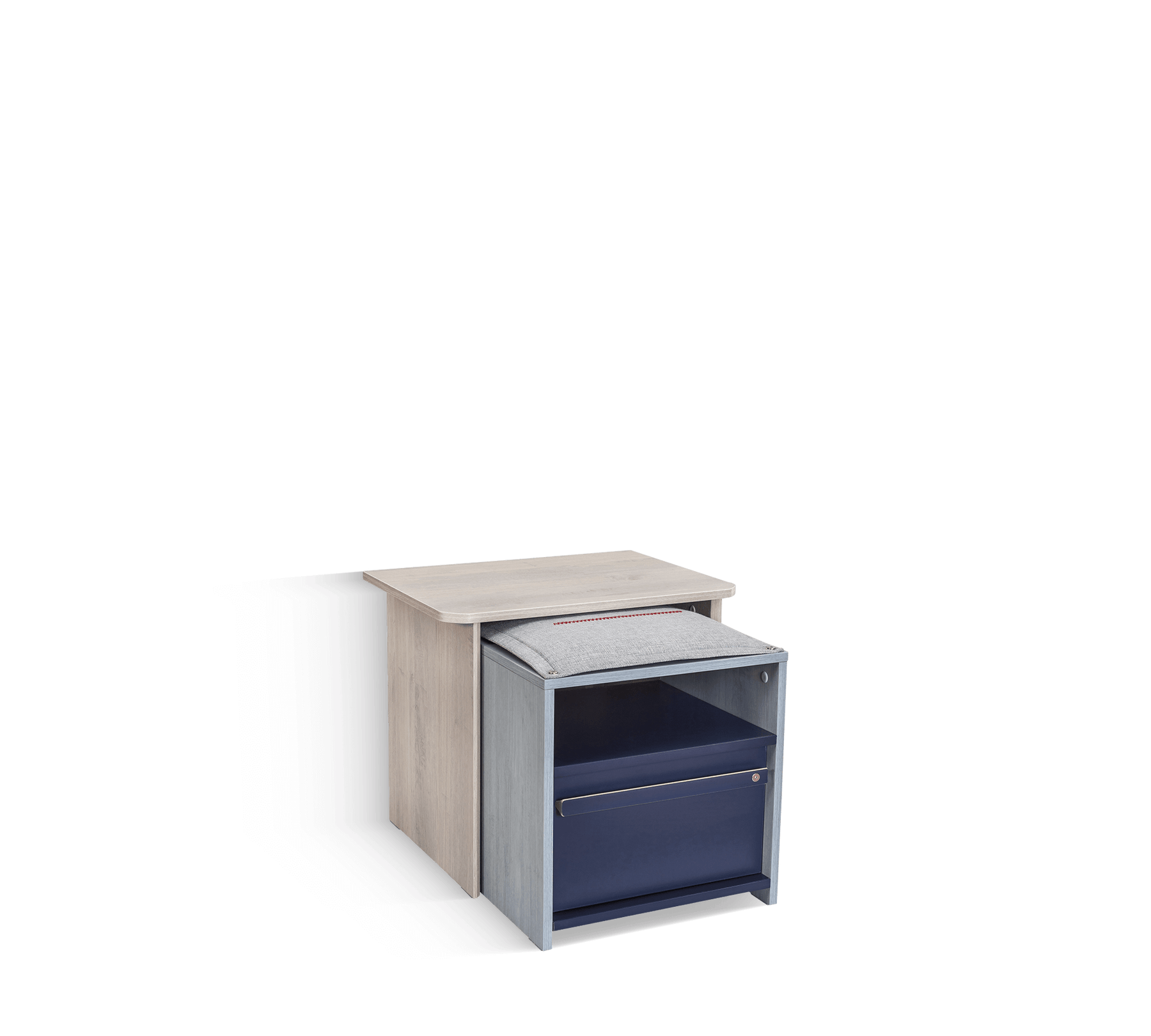 Trio natbord med bordplade har en skuffe, der hjælper med at organisere små og personlige genstande. Trio natbord med bordplade er et af de mest praktiske møbler til små ungdomsværelser og tiltrækker opmærksomhed med sit moderne design.
