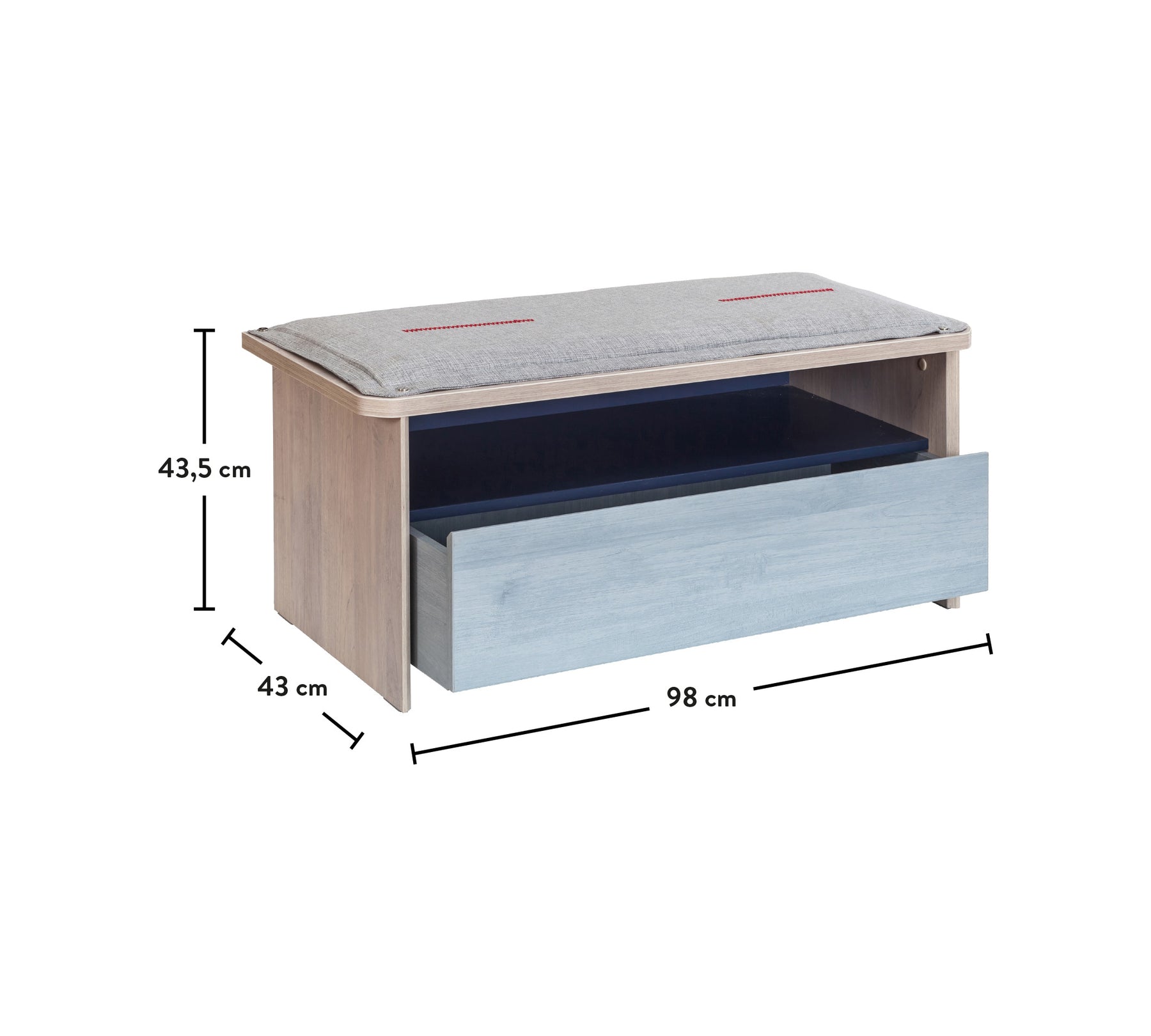 Bredde: 98 cm | Højde: 43 cm | Dybde: 43 cm
