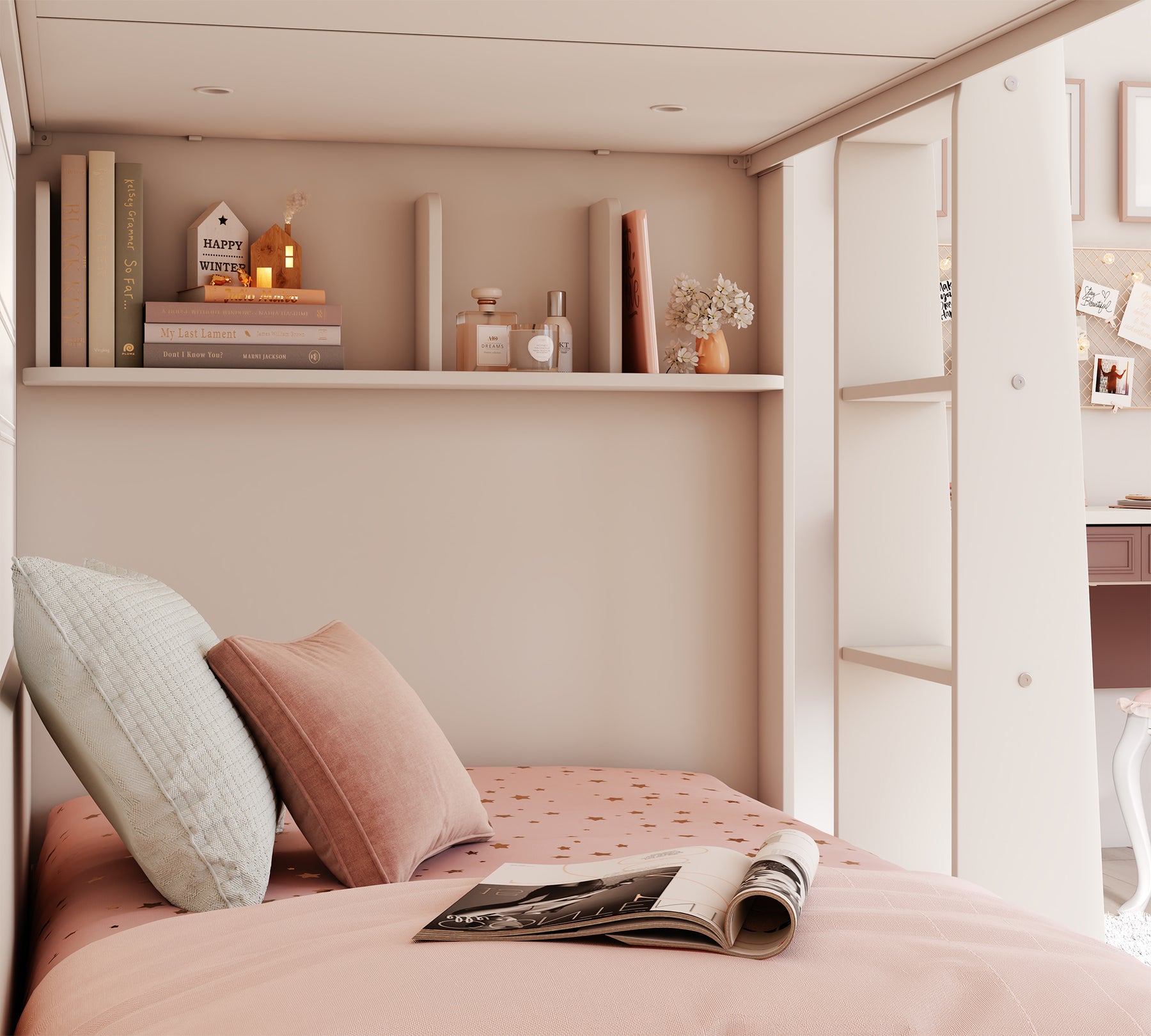 Takket være sit funktionelle og moderne design er Varia Krem-køjesengen ikke kun en seng, men skaber også et ryddeligt og behageligt opholdsrum i værelset. Med den holdbarhed, som Çilek-kvaliteten tilbyder, er det et produkt, der kan bruges med glæde i mange år.
