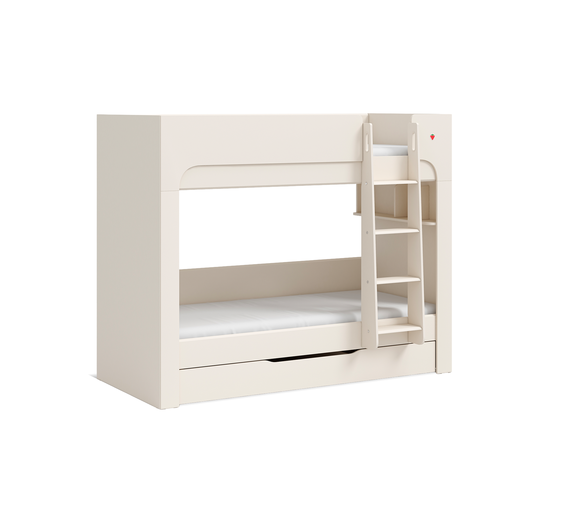 Varia Cremefarvet Smal Køjeseng (med Bundskuffe) er med sit kompakte design det perfekte valg til små værelser, hvor det udnytter pladsen effektivt, samtidig med at dets solide konstruktion og sikkerhedsdetaljer gør det til familiernes foretrukne valg. Med sine 90×200 cm tilbyder det en rummelig soveplads både ovenpå og nedenunder. Sikkerhedsskinner, trappetrin og afrundede kanter gør det sikkert for børn at bruge.