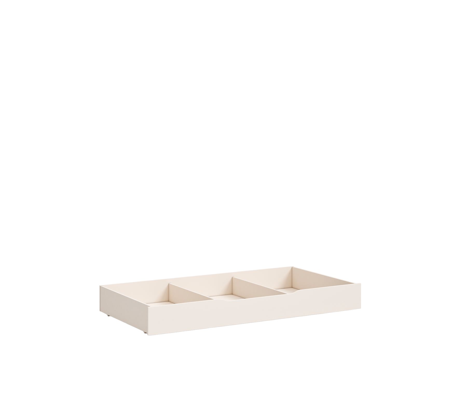 Den specialdesignede underkassette til Varia Krem-køjesengen giver dig mulighed for nemt at opbevare mange ting, fra legetøj til sengetøj, takket være sin store indvendige volumen. Takket være sin tredelte konstruktion sikrer den ordentlig opbevaring og kan nemt åbnes og lukkes med sit skinnesystem.